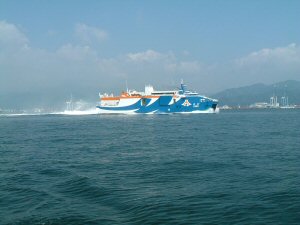 | 清水港を出港します。最初は元気です。 | 下田へ向かうフェリー「希望」 | 心地良い波に…眠ってしまいました。 |