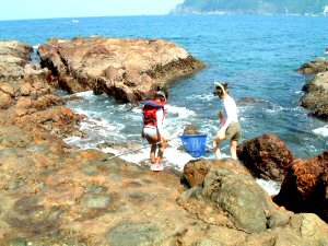 | 貝、魚、カニ、いっぱい獲りましたが、 また海に帰しました。 |